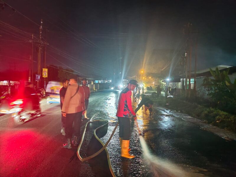 Polsek Rambutan Amankan Jalan Juanda Akibat Tumpahan Solar