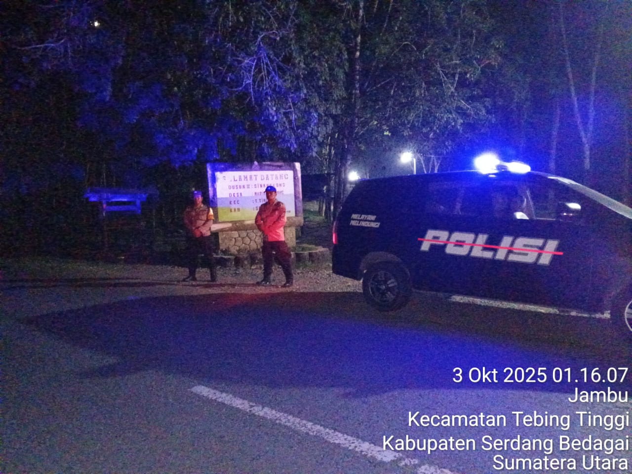 Petugas melaksanakan patroli dengan rute Jalan Lintas Umum Tebing Tinggi-Sipispis Simpang Sinangkong Desa Mariah Padang Kecamatan Tebing Tinggi Kabupaten Serdang Bedagai.