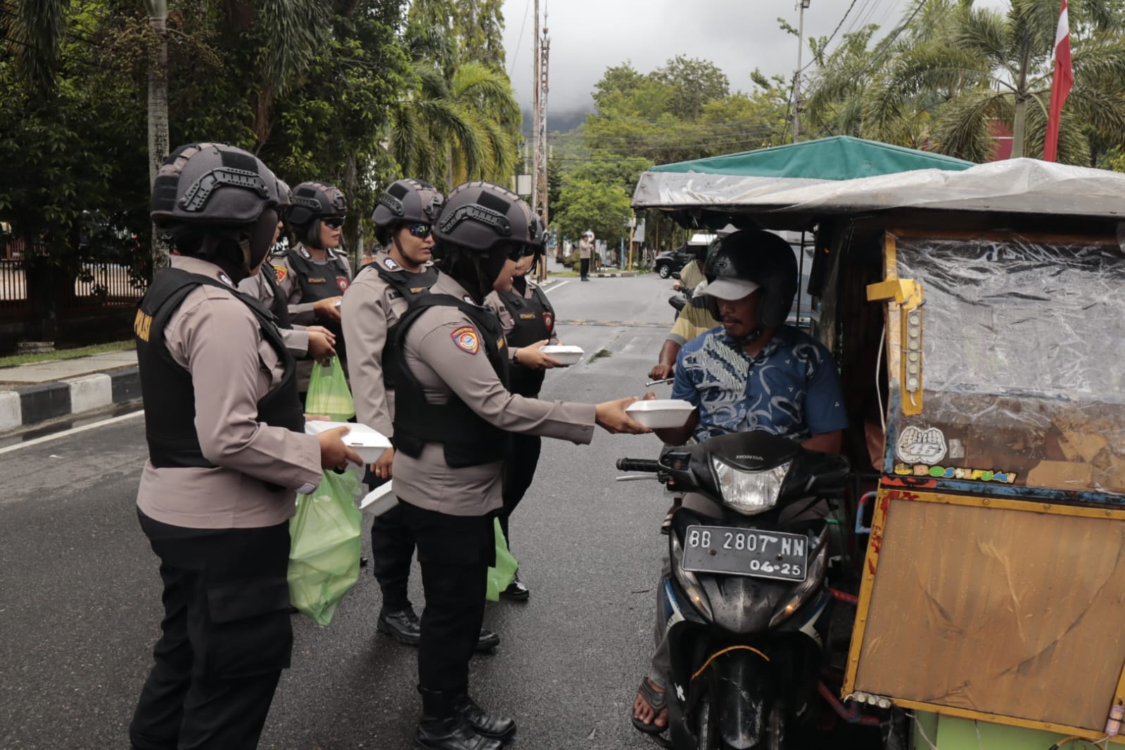 Dalam kesempatan ini, Polwan Polres Sibolga secara langsung memberikan nasi kotak kepada para pengendara becak motor yang menjadi sasaran kegiatan. Aksi sosial ini merupakan wujud nyata kepedulian Polri terhadap masyarakat, khususnya bagi para pengendara yang setiap hari berjuang mencari nafkah di tengah situasi ekonomi yang menantang.