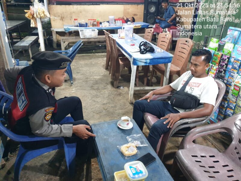 BATU BARA – Personil Sat Samapta Polres Batu Bara melaksanakan Patroli, dan Cooling System dalam mencegah terjadinya aksi 3C dan tindak kejahatan lainnya di Wilayah Hukum Polres Batu Bara. Giat Patroli dilaksanakan dengan menyambangi masyarakat yang berada di Warung Kak Sikiati di Sei Mangkei, Batu Bara, Sumatera Utara, Selasa (21/10) Pukul.23.30 Wib.