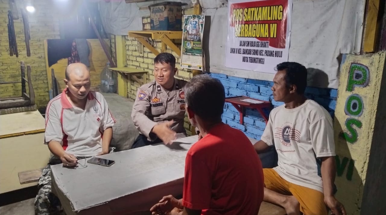 TEBINGTINGGI, Beritaimn.com – Bhabinkamtibmas Polsek Padang Hulu Polres Tebing Tinggi melaksanakan sambang ke Pos Satkamling guna menyampaikan pesan-pesan Kamtibmas kepada petugas jaga Pos Satkamling Serba Guna VI Jalan Sisingamangaraja Gg Bakti Lingk 06 Kelurahan Bandarsono Kecamatan Padang Hulu Kota Tebing Tinggi, Selasa (3/6/2025).
