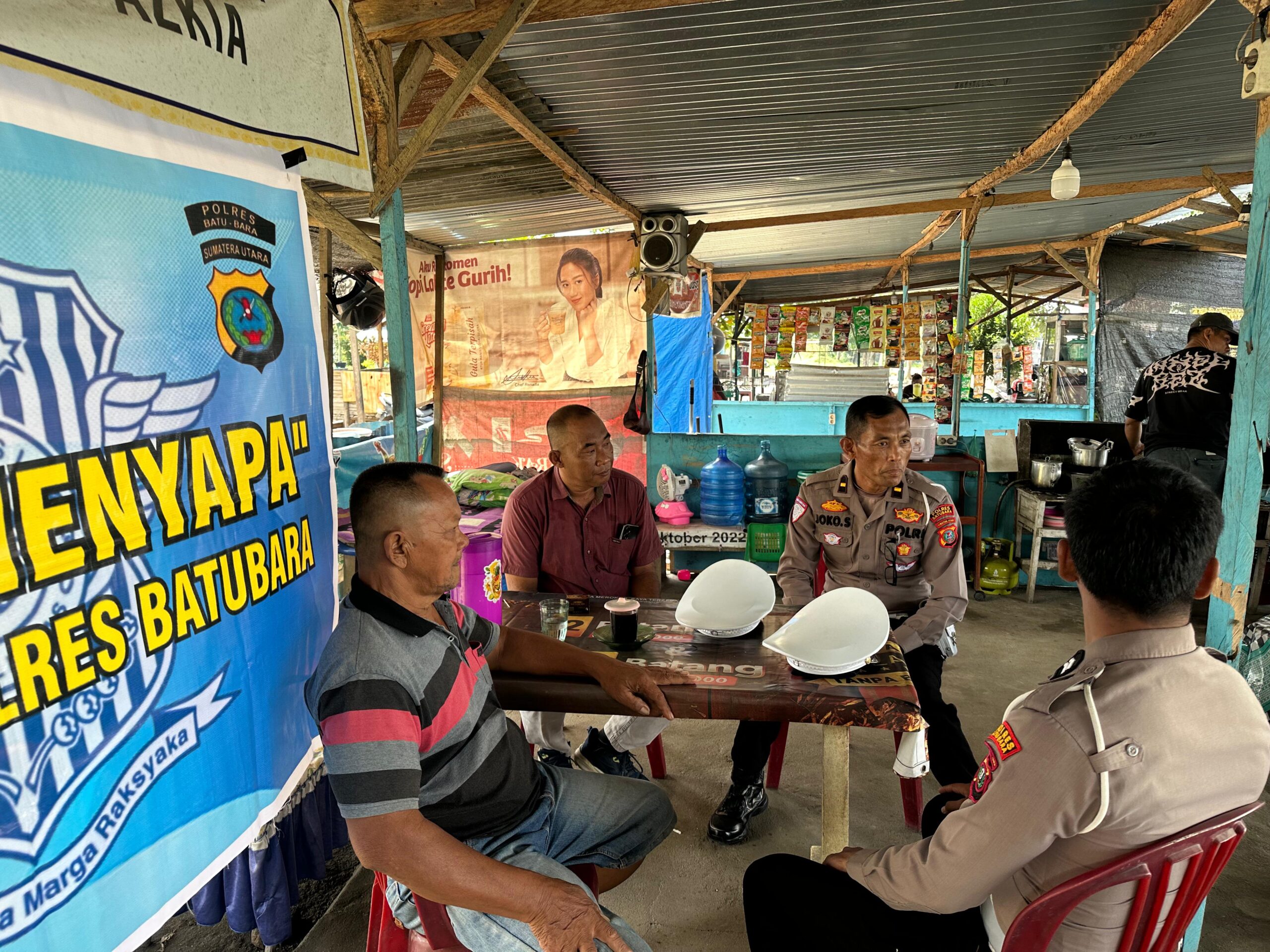 BATU BARA – Dalam upaya meningkatkan kesadaran dan kepatuhan pengemudi terhadap aturan lalu lintas, Satlantas Polres Batu Bara, melaksanakan kegiatan Program Lalulintas Menyapa melalui Ngopi Bareng dengan tema Keselamatan Berlalulintas. Kegiatan berlangsung di Warung Kopi pangkalan Angkutan Umum depan Timbangan, Kecamatan Lima Puluh, Batu Bara, Sumatera Utara, Jumat (1/8) Pukul.09.00 Wib.