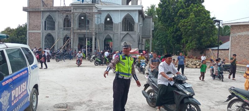BATU BARA – Personil Sat Lantas Polres Batu Bara melaksanakan pengaturan arus lalulintas disejumlah mesjid seperti, Mesjid Al Munawarah Siparepare, Mesjid Jamiq Lima Puluh, dan Mesjid Istiqqomah Sei Balai, Batu Bara, Sumatera Utara, Jumat (31/10) Pukul.12.40 Wib.