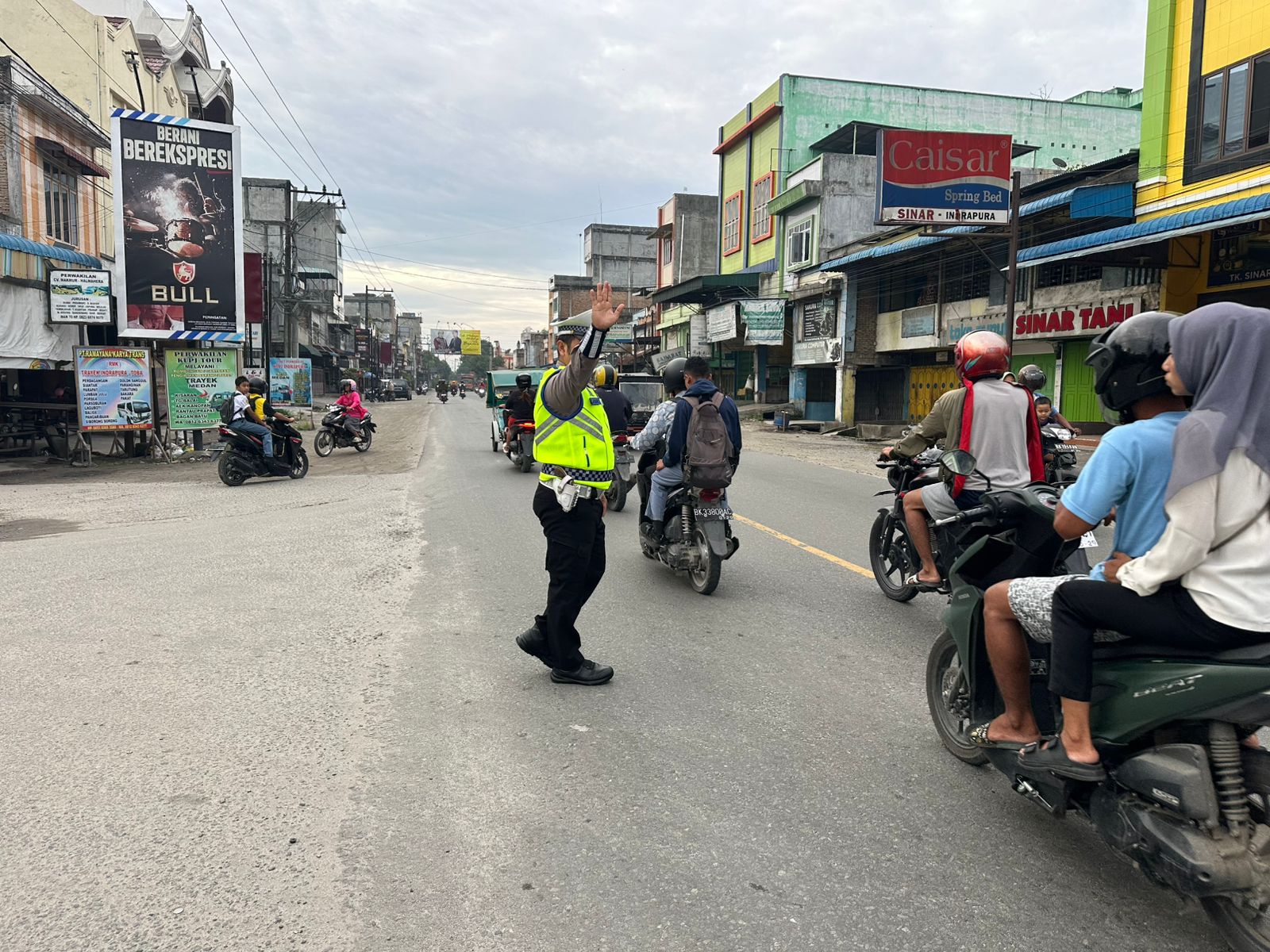 Giat pengaturan arus lalulintas dipimpin, Kasat Lantas AKP Simon E. Simatupang, S.H, M.H, bersama, KBO Lantas, Para Kanit Sat Lantas, Personil Sat Lantas Polres Batu Bara, Personil Pos Lantas Indrapura, dan Personil Pos Lantas Sei Bejangkar.