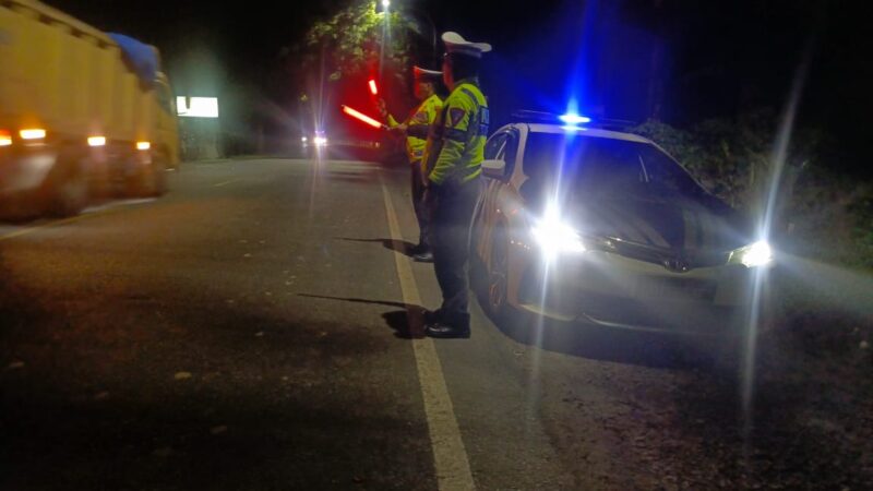 BATU BARA – Personil Satuan Lalu Lintas Polres Batu Bara melaksanakan Patroli Blue Light guna upaya pencegahan terjadinya Kemacetan, Kecelakaan lalu lintas, dan balap liar serta Kejahatan Jalanan, dengan menyusuri lokasi disekitaran Jalinsum, Senin (27/10) Pukul.21.00 Wib.