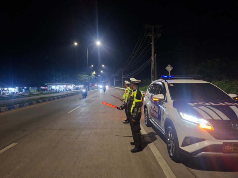 BATU BARA – Personil Satuan Lalu Lintas Polres Batu Bara melaksanakan Patroli Blue Light guna upaya pencegahan terjadinya Kemacetan, Kecelakaan lalu lintas, dan balap liar serta Kejahatan Jalanan, dengan menyusuri lokasi disekitaran Jalinsum, Selasa (18/11) Pukul.21.00 Wib.