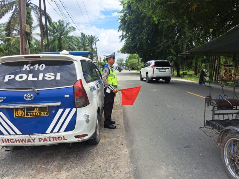 BATU BARA – Dalam memberikan pelayanan terbaik bagi pengguna jalan, Personil Sat Lantas Polres Batu Bara melaksanaan Patroli Kibas Bendera di beberapa titik rawan kemacetan di Jalinsum Indrapura – Perkebunan Tanah Datar, Jalinsum Lima Puluh – Desa Perkebunan Gambus, dan Jalinsum Sei Bejangkar – Perkebunan Sei Bejangkar, Batu Bara, Sumatera Utara, Kamis (16/10) Pukul.16.30 Wib.