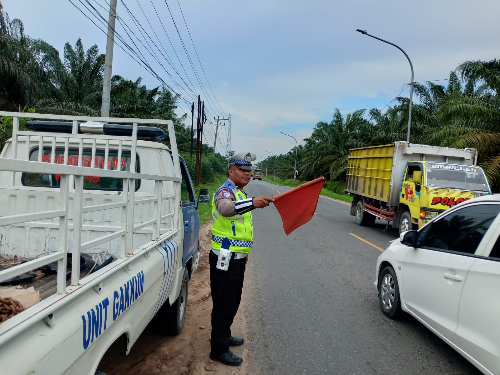 BATU BARA – Dalam memberikan pelayanan terbaik bagi pengguna jalan, Personil Sat Lantas Polres Batu Bara melaksanakan Patroli Kibas Bendera di beberapa titik rawan kemacetan di Jalinsum Indrapura – Perkebunan Tanah Datar, Jalinsum Lima Puluh – Desa Perkebunan Gambus, dan Jalinsum Sei Bejangkar – Perkebunan Sei Bejangkar, Batu Bara, Sumatera Utara, Minggu (26/10) Pukul.13.00 Wib.