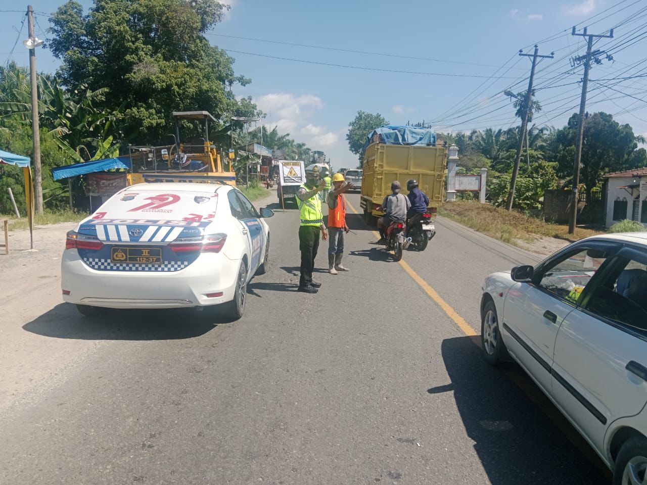 Sat Lantas Polres Batu Bara Pengamanan Arus Lalulintas di Lokasi Perbaikan Jalan