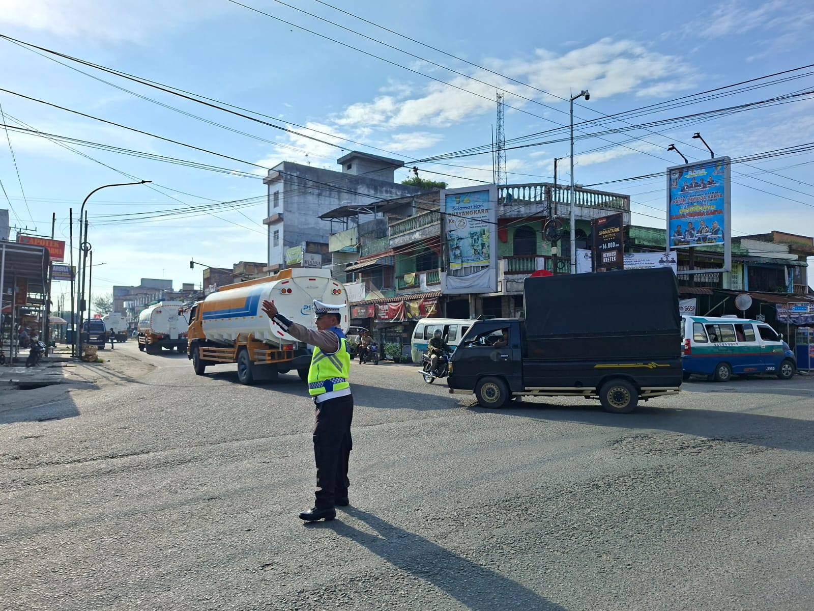 Giat pengaturan arus lalulintas dipimpin, Kasat Lantas AKP Simon E. Simatupang, S.H, M.H, bersama, KBO Lantas, Para Kanit Sat Lantas, Personil Sat Lantas Polres Batu Bara, Personil Pos Lantas Indrapura, dan Personil Pos Lantas Sei Bejangkar.