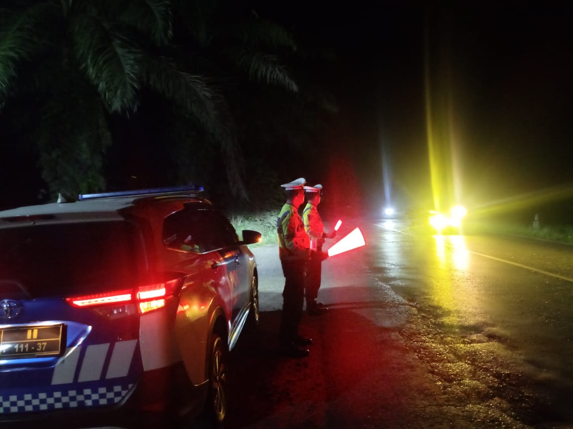 BATU BARA – Personil Satuan Lalu Lintas Polres Batu Bara melaksanakan Patroli Blue Light guna upaya pencegahan terjadinya Kemacetan, Kecelakaan lalu lintas, dan balap liar serta Kejahatan Jalanan. Giat patroli dilaksanakan dengan menyusuri lokasi disekitaran Jalinsum Sumber Padi, Jalinsum Desa Simpang Gambus, Jalinsum Desa Tanah Tinggi, dan Jalinsum Desa Cinta Dame, Batu Bara, Sumatera Utara, Sabtu (30/8) Pukul.21.30 Wib.