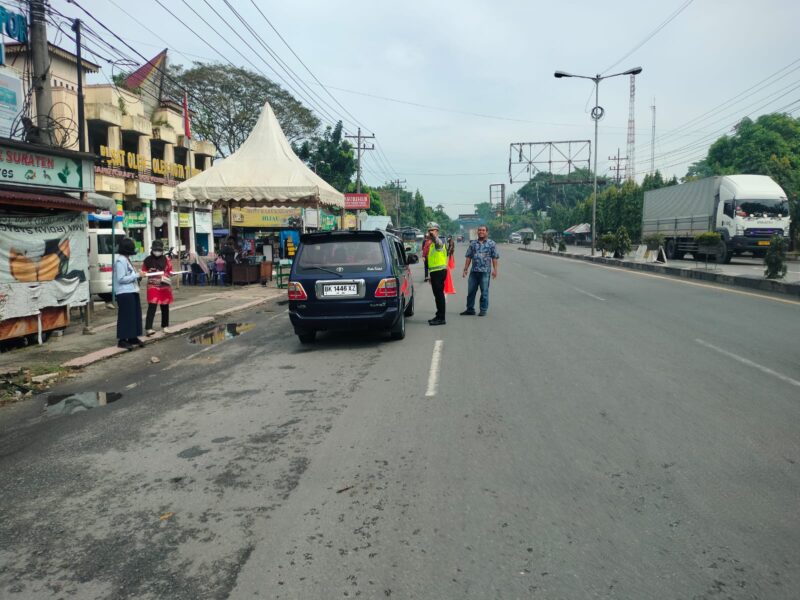 Personel Satlantas membantu pendampingan dan pengaturan selama kegiatan berlangsung serta melaksanakan pemeriksaan dengan pendekatan humanis dan memastikan pengemudi merasa nyaman.