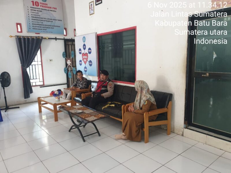 BATU BARA – Personil Sat Sabhara Polres Batu Bara, Aipda Oky Hasibuan, bersama Bripda Ikhsan Aperi, melaksanakan Patroli, dan sambang desa kepada masyarakat di Kantor Desa Antara, dan Kantor Desa Sei Mangkei Lama, Batu Bara, Sumatera Utara, Kamis (6/11) Pukul.12.00 Wib.