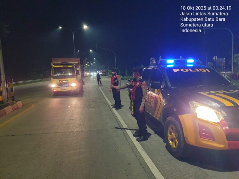 BATU BARA – Dalam menjaga keamanan dan ketertiban masyarakat di malam hari, Sat Samapta Polres Batu Bara melaksanakan kegiatan patroli blue light di Akses Tol Lima Puluh, Batu Bara, Sumatera Utara, Sabtu (18/10) Pukul.00.30 Wib.