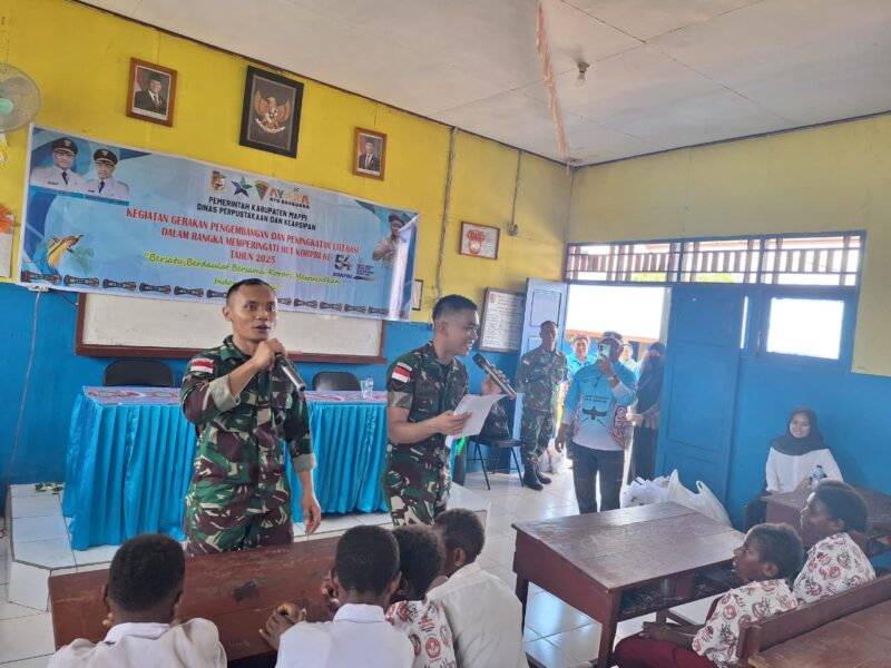 DAGIMON, MAPPI – Satuan Tugas (Satgas) Batalyon Infanteri (Yonif) 123/Rajawali Pos Kotis bekerja sama dengan Dinas Perpustakaan menggelar kegiatan gerakan pengembangan dan peningkatan literasi di SD Inpres Dagimon, Kampung Dagimon, Distrik Obaa, Kabupaten Mappi, Papua Selatan. Kegiatan ini bertujuan untuk meningkatkan minat baca dan kemampuan literasi siswa-siswi di wilayah tersebut. Selasa,(02/12/2025)