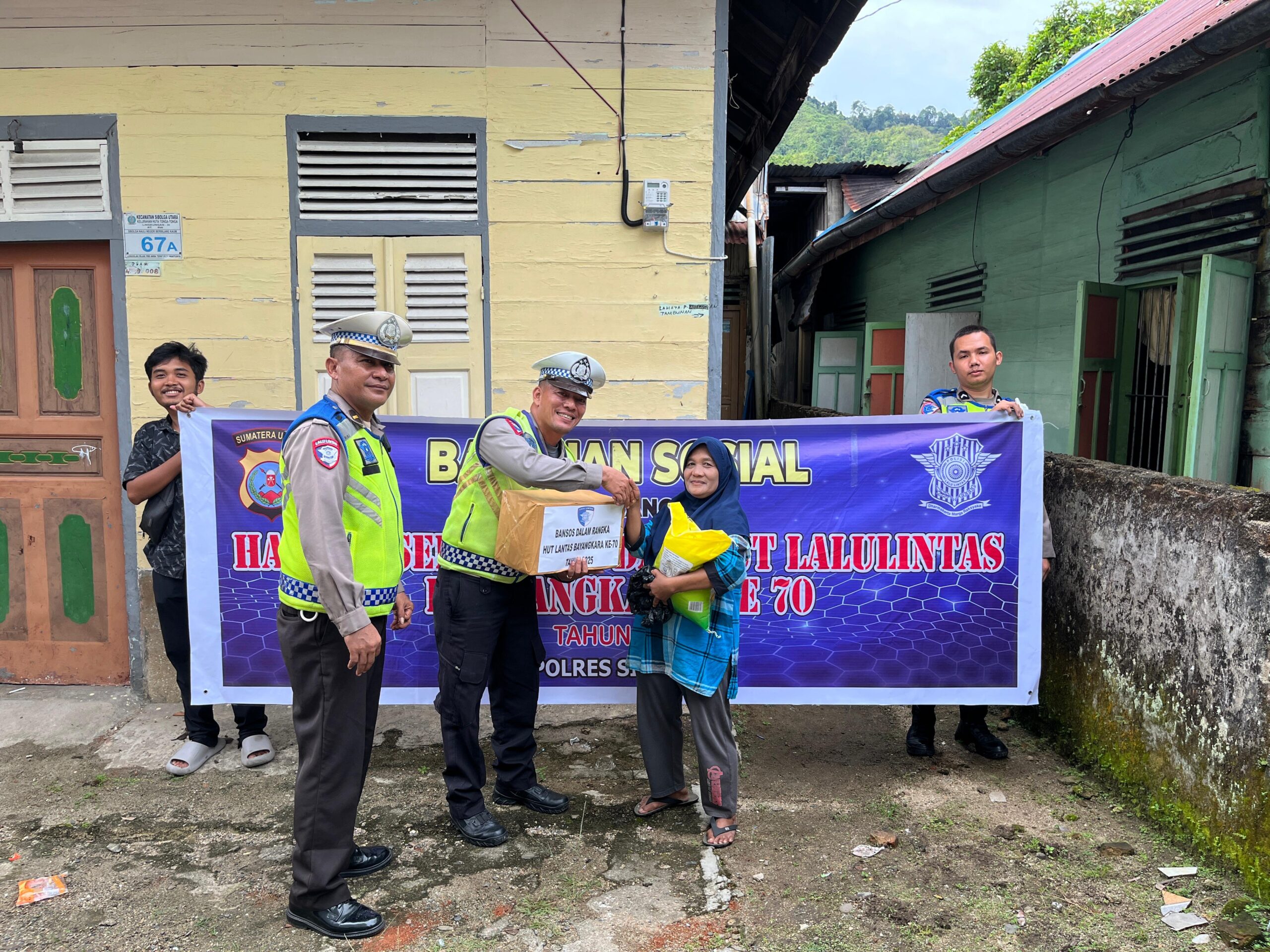 SIBOLGA – Dalam rangka memperingati *Hari Keselamatan Lalu Lintas* dan *HUT Lalu Lintas Bhayangkara ke-70*, Satuan Lalu Lintas (Satlantas) Polres Sibolga melaksanakan kegiatan *pemberian bantuan sosial* kepada masyarakat kurang mampu di Kota Sibolga, Senin (15/09/2025).