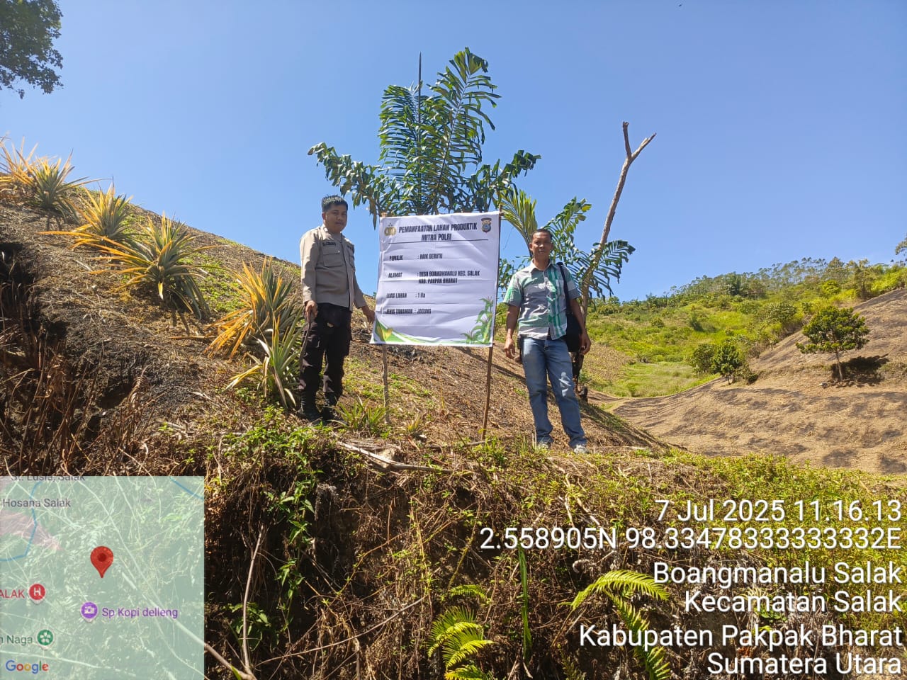 SALAK – Satu Polisi Satu Desa Mulai melakukan pemasangan spanduk kegiatan Penanaman Serentak, Selasa 08 Juli 2025 sekira pukul 09.00 s/d 11.00 wib di wilayah Hukum Polres Pakpak Bharat.