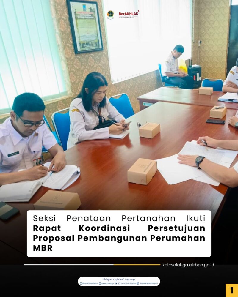 ​Pada hari Rabu, 3 Desember 2025, Seksi Penataan Pertanahan Kantor Pertanahan Kota Salatiga menghadiri Rapat Koordinasi Persetujuan Proposal Pembangunan Perumahan bagi Masyarakat Berpenghasilan Rendah (MBR). Rapat ini berlangsung di Ruang Rapat DPMPTSP Kota Salatiga dan diikuti oleh lintas perangkat daerah yang terkait dalam proses perizinan dan penataan ruang.
