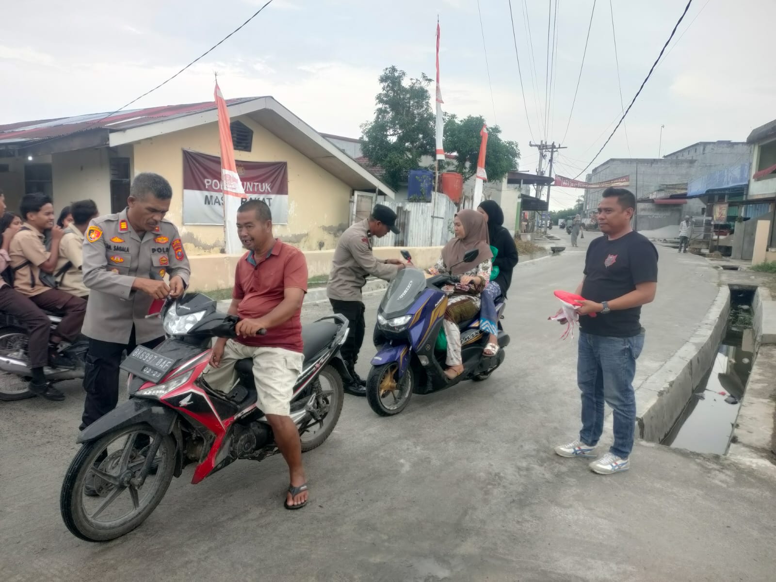 “Gerakan pembagian bendera dilakukan untuk menggelorakan semangat kemerdekaan dengan berbagi bendera kepada masyarakat yang melintas di depan Mako Polsek Medang Deras” Sebut Kapolsek AKP A.H. Sagala.