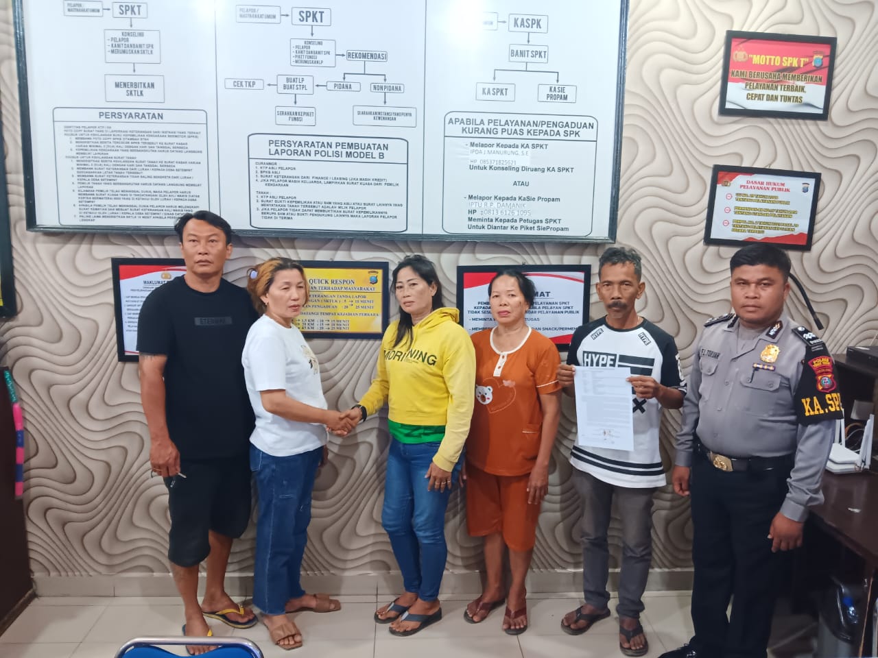 Kegiatan mediasi dilaksanakan oleh Kanit 1 SPKT Aiptu Frenki Lumbantoruan, SH bersama Aipda Ridwan Sahri, dan Brigadir Erik Sugiarto, SH. Turut hadir dalam kegiatan tersebut kedua belah pihak yang terlibat, yaitu Elim Hayati Sinaga (52) sebagai pihak pertama, serta Nuraidah Sinaga (57) dan Hani (50) sebagai pihak kedua, yang disaksikan oleh masing- masing keluarga.