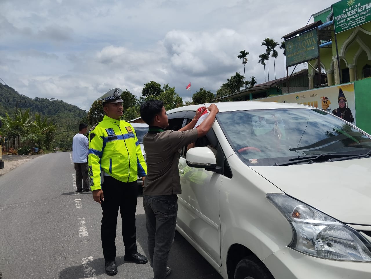 SALAK – Polres Pakpak Bharat melalui Satuan Lalu Lintas bersama Himpunan Mahasiswa Islam ( HMI ) Komisariat Pertaki Kabupaten Pakpak Bharat mengajak masyarakat di Kabupaten Pakpak Bharat untuk bersama – sama kibarkan bendera Merah Putih Jelang Peringatan HUT RI ke – 80, Kamis 07 Agustus 2025 sekira pukul 11.00 s/d 12.15 wib di jalan lintas Sidikalang – Subulussalam tepatnya di depan Pos Lantas Sibande kecamatan STTU Jehe Kabupaten Pakpak Bharat.