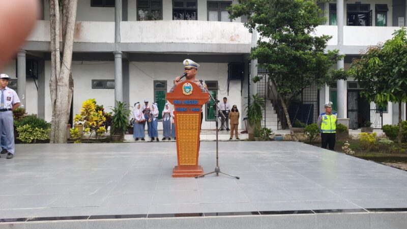 TEBING TINGGI – Kasat Lantas Polres Tebing Tinggi, AKP Nanang Kusumo, S.E. bertindak sebagai Inspektur Upacara (Irup) pada pelaksanaan upacara bendera di SMA Negeri 3 Kota Tebing Tinggi, Senin (13/10/2025).