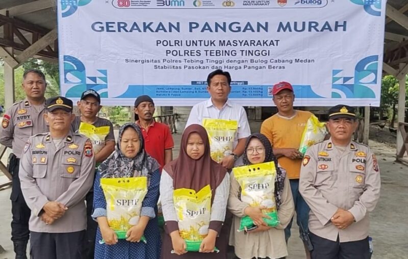 TEBING TINGGI, – Dalam upaya menjaga stabilitas harga bahan pokok dan membantu masyarakat memperoleh pangan dengan harga terjangkau, Polres Tebing Tinggi melalui Polsek Tebing Tinggi menggelar kegiatan Gerakan Pangan Murah. Kegiatan ini berlangsung di Balai Pertemuan Desa Sei Serima Kecamatan Tebing Tinggi, Kabupaten Serdang Bedagai pada Selasa (4/11/2025).